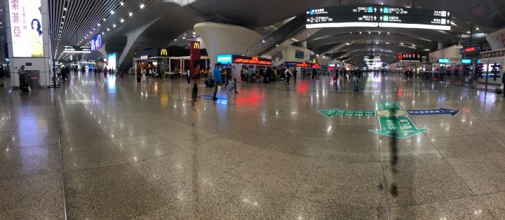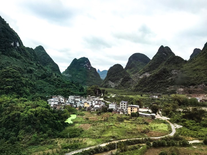 This morning, we got to the unbelievably vast station, and had breakfast at McD’s (there was a limited choice) where, oddly, everything was served with a cup of sweet corn instead of chips. We boarded the train for the 10 hour journey thinking at least we would be able to see China rolling by. Except, our allocated seats were in row one, with only a quarter of a window and very limited legroom. A bit like flying to Bangkok from London in economy without a g&t to ease the pain. Not good. We’re over train travel in China, even Mr S train man is finding it all a trial. Never again. We have had some glimpses of interesting scenery, including staggering limestone karsts around Guilin.