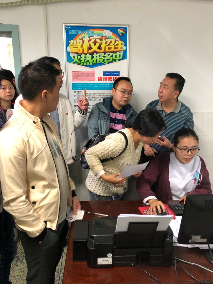 Then, it was off to the police training school to get our licences. We sat in a classroom and a very jolly policeman with lots of stripes and stars on his uniform greeted us and told us to obey the rules, without saying what they were. We had to go up in twos to sign a couple of documents and then two girls were laminating our licences. The policeman was having a lovely afternoon with us and beamed constantly whilst taking lots of photos. My licence appeared to have a photo of someone else, it certainly didn’t look much like me. We also received a Chinese number plate for the cars and that was it. We were all legal to drive in China. It had taken eight hours to get that lot done. We all agreed that it had been a fab day though. Lots of chat and laughter and weird stuff to witness. Perfect.