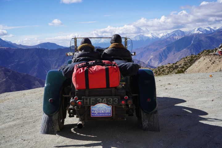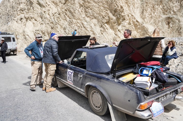 We came across Pads and Ham and the sweep vehicle working on the Merc, yet again. Hopefully, it’s fixed now. Hopefully. The blue Alvis, that we know so we’ll from other rallies with the previous owner, is terminal, unfortunately. It’s gearbox has failed and there is nothing to be done. It’s been problematic from the start with a variety of issues. Heroic mechanics, Richard and Karim, towed it for 70 kms, including over a 5200 metre pass, partially in the dark. The stuff of nightmares. As they were coming down from the pass the attachment broke on the tow rope. It was dark and the Landie is very noisy so they weren’t aware of it. Luckily, there was a local team support vehicle behind them and they rushed forward and got them to stop. It was a terrifying experience for all of them. We don’t like losing a member of the rally family; we are a tight knit crew so three cars in three days is very sad.