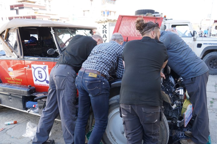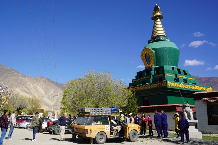 We arrived at the hotel in time for a late lunch. My rally vegetarianism went out of the window. I had a yak burger, chips and a Lhasa beer. Very delicious it was too. Then it was time for a nap before a soak in the tub – luxury! Tonight, we enjoyed a scrummy rooftop barbecue overlooking the magnificent Potala Palace in Lhasa, Tibet. It’s not everyday you can say that. Tomorrow it’s exploration time. A. has some fettling to do on the car, as have all the crews. I intend to go shopping.