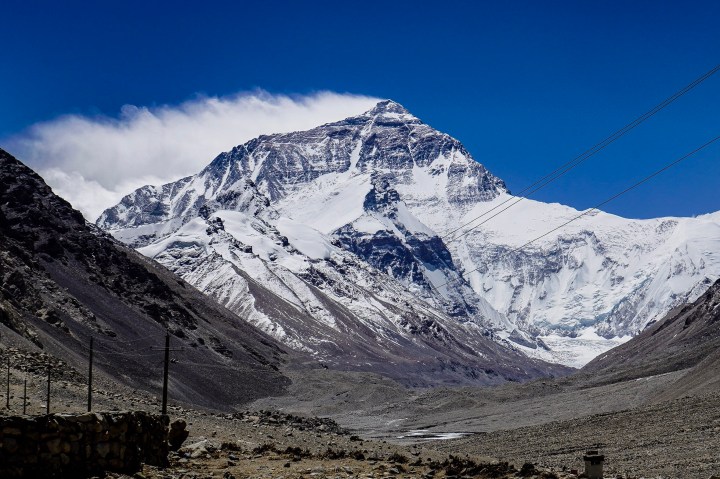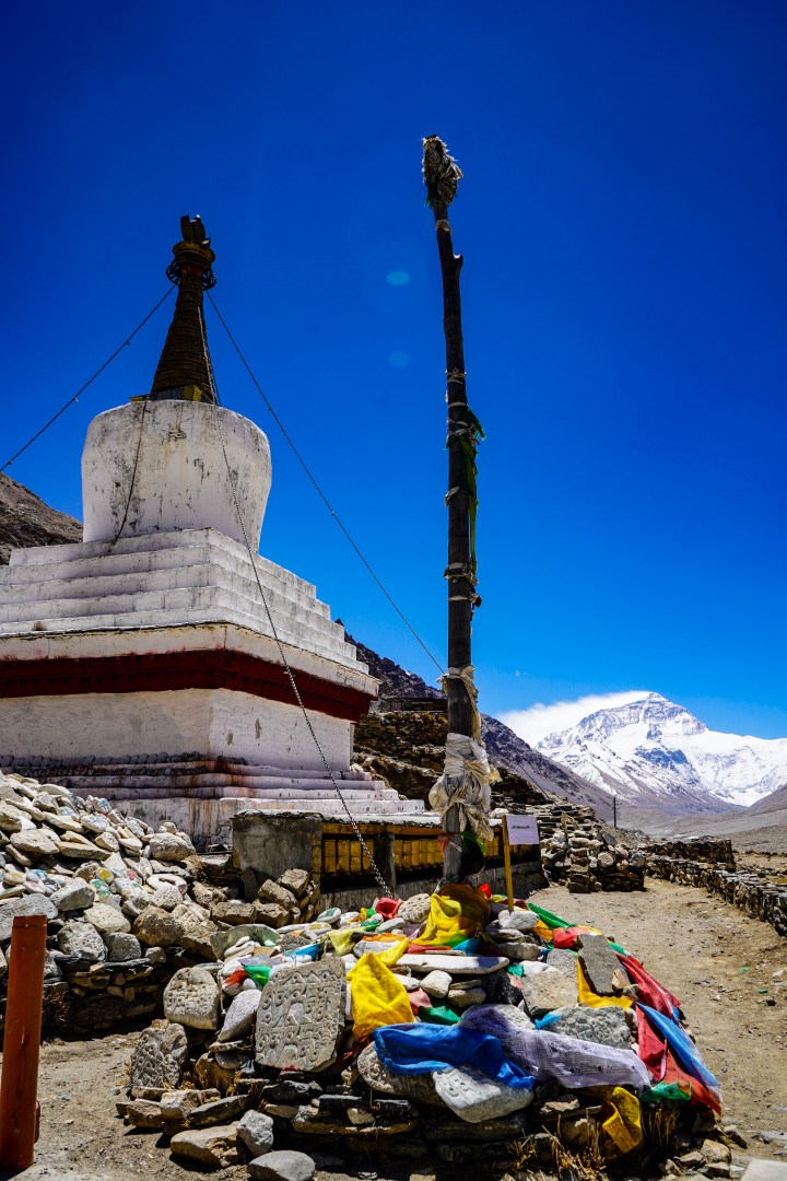 We got to the monastery at the end of the road and there it was. The world’s highest mountain was staring us in the face. The weather gods had been kind and there was barely a cloud in the sky just the snow blowing off the top.